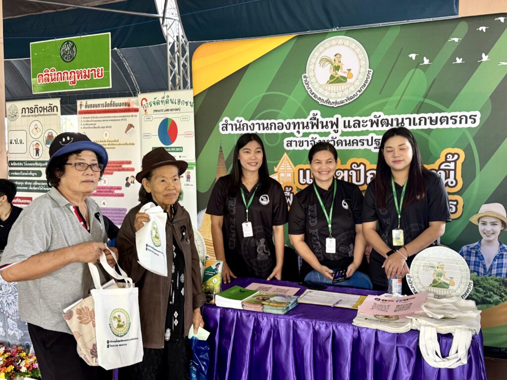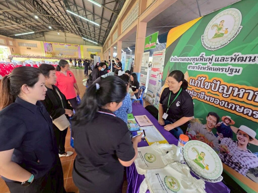 ทั้งนี้ สำนักงานกองทุนฟื้นฟูและพัฒนาเกษตรกร โดยนางสาวรัชดา พงศ์ภูมิมาศ หัวหน้าสำนักงานกองทุนฟื้นฟูและพัฒนาเกษตรกรสาขาจังหวัดนครนครปฐม และพนักงานลูกจ้าง ได้เข้าร่วมโครงการคลินิกเกษตรเคลื่อนที่ ซึ่งรองผู้ว่าราชการจังหวัดนครปฐม (นายสมาวิษฎ์ สุพรรณไพ) และคณะ ได้เยี่ยมชมบูธ ของสำนักงานกองทุนฟื้นฟูฯ สาขาจังหวัดนครปฐม ซึ่งมาออกบูธประชาสัมพันธ์ ภารกิจงานด้านต่าง ๆ ของสำนักงาน ได้แก่ การขึ้นทะเบียนหนี้ การขึ้นทะเบียนองค์กรเกษตรกร โดยบูธของสำนักงาน ได้รับความสนใจจากเกษตรกร ประชาชน ที่มาร่วมงานเป็นอย่างมาก